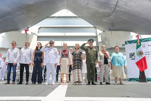 En tanto que el secretario de Marina enfatizó que la transformación del México actual, colocar a la mar como un eje estratégico de desarrollo nacional, fuente de prosperidad compartida y pilar de la defensa de la soberanía y seguridad. Por ello, refrendó el honor, deber, lealtad y patriotismo que guía a las y los marinos mexicanos.