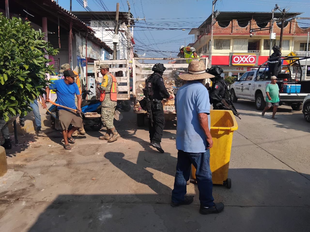 San Marcos, Gro. 3 de enero del 2026.- Desde las primeras horas de este viernes, la Secretaría de Seguridad Pública del Estado de Guerrero, a través de la Policía Estatal, mantiene un despliegue operativo en el municipio de San Marcos, en coordinación con personal del Ejército Mexicano y la Guardia Nacional, para realizar labores de limpieza, retiro de escombros y apoyo a la población, luego del sismo registrado la mañana del viernes.
