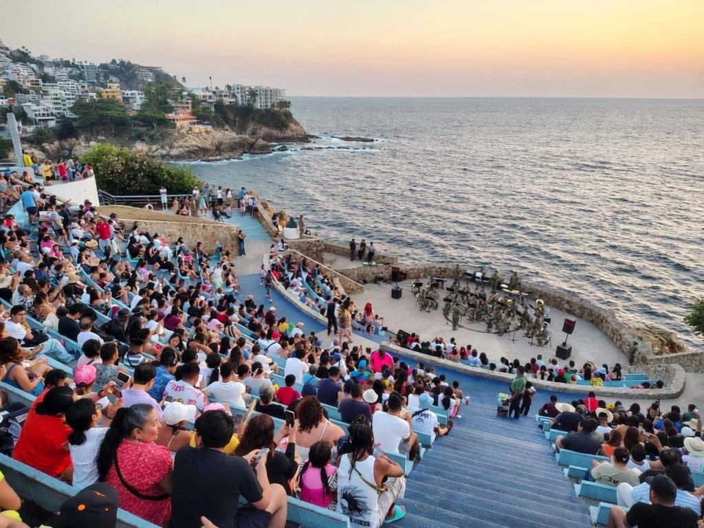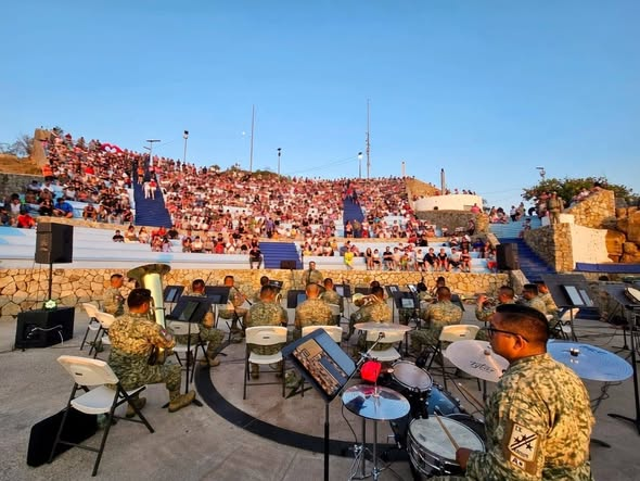 Acapulco, Gro., 28 de febrero del 2026. En un escenario lleno de historia y tradición como lo es Sinfonía del Mar, la Banda de Música de la Novena Región Militar ofreció un emotivo concierto que reunió a cerca de mil personas entre familias, jóvenes y visitantes, quienes disfrutaron de una velada musical en un ambiente de armonía y convivencia.